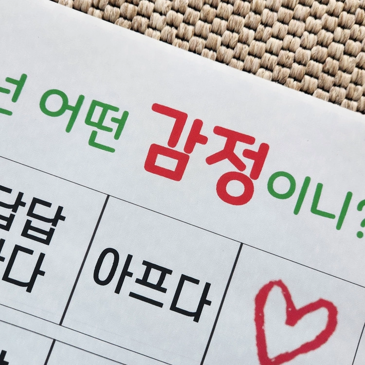 아이들이 다채로운 감정을 알고 표현하는데 도움을 주는 감정단어로 구성된 대형 현수막과 수업자료 세트입니다.